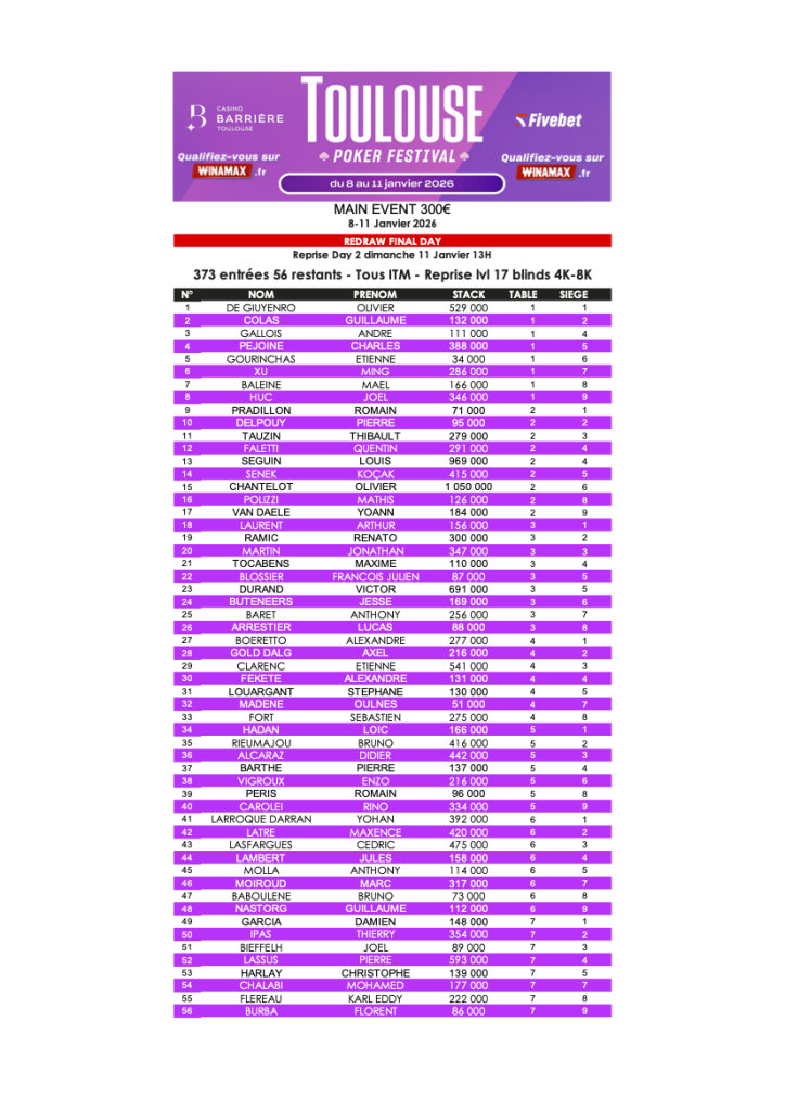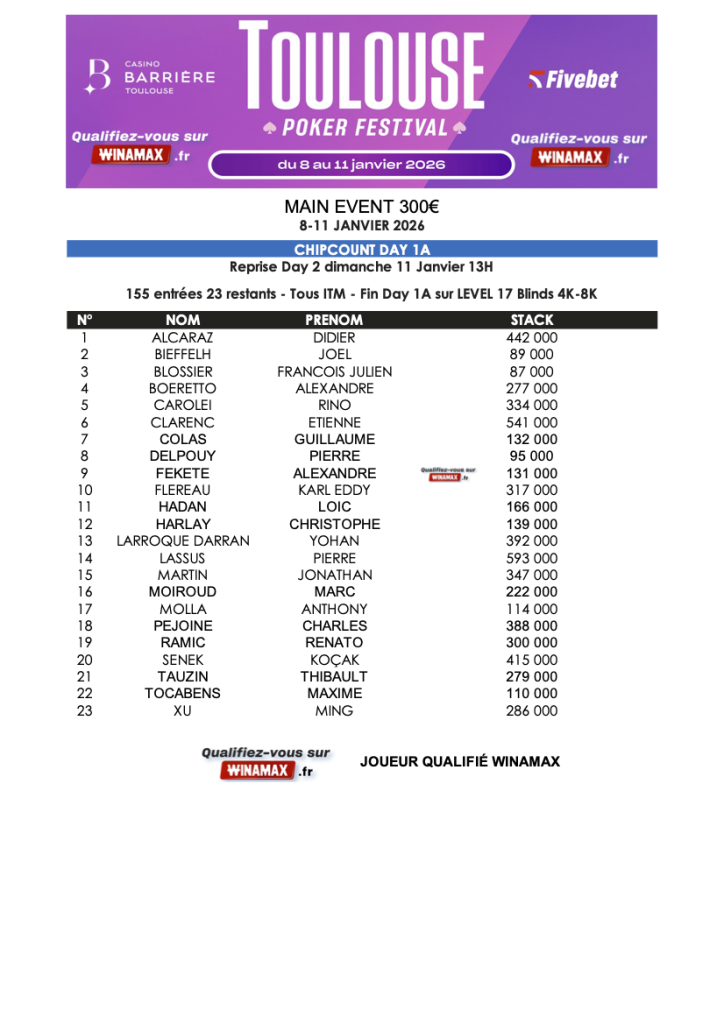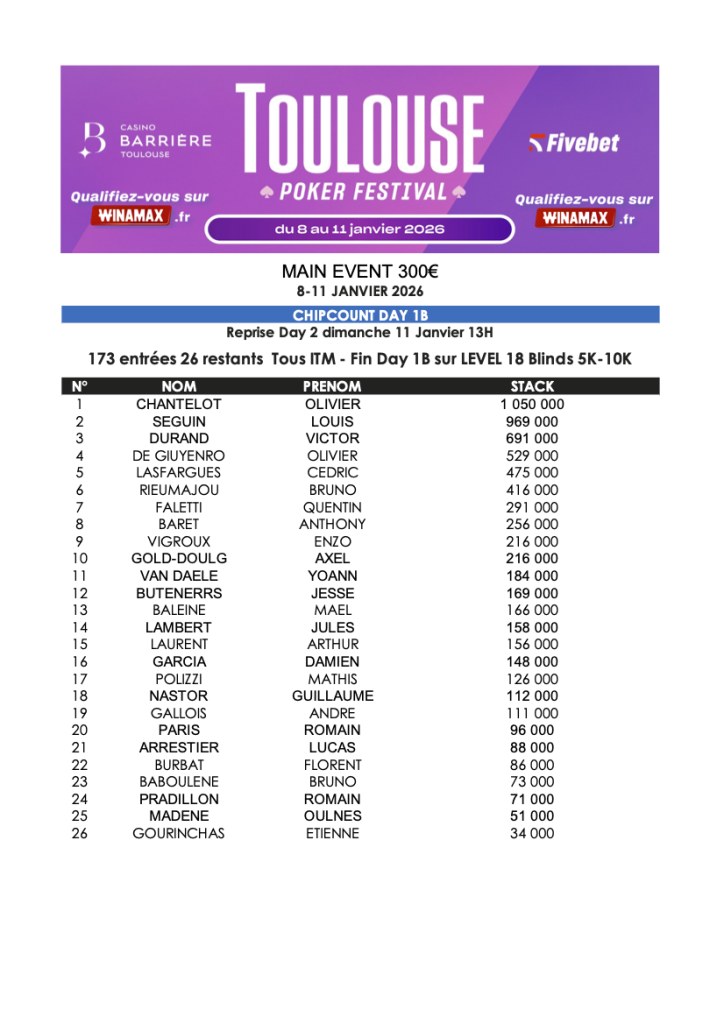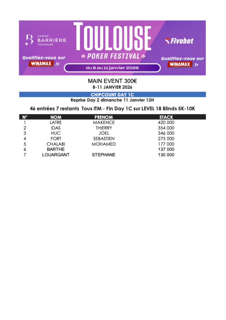 Toulouse Poker Festival Janvier 2026