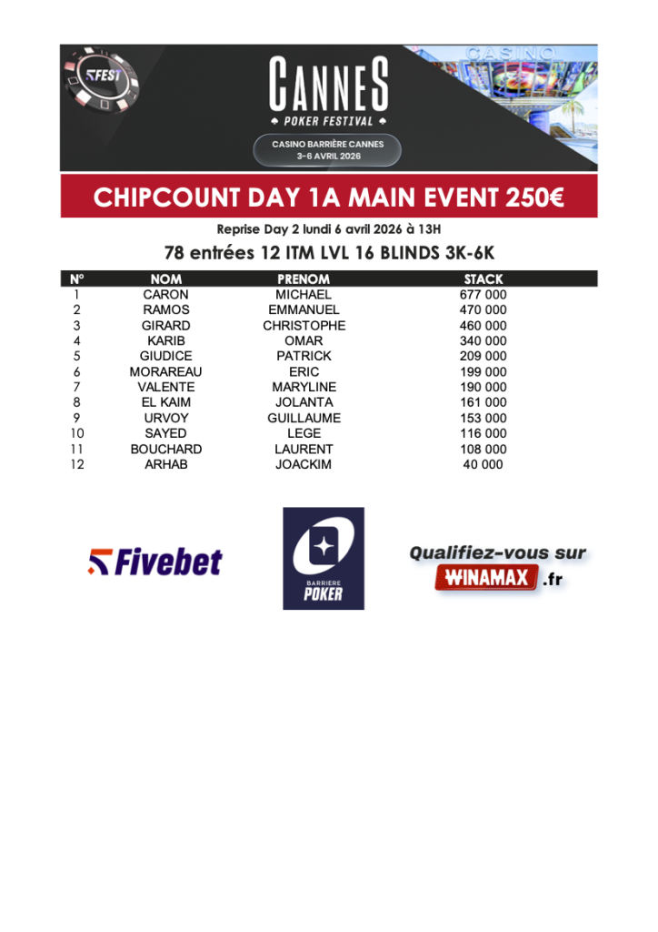 | 18 | CARON | MICHAEL | 690,00 € |