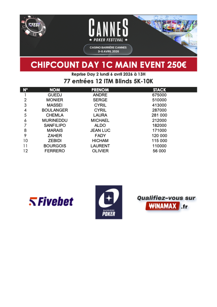| 1 | HEBDI | MALIK | 9 619,00 € |