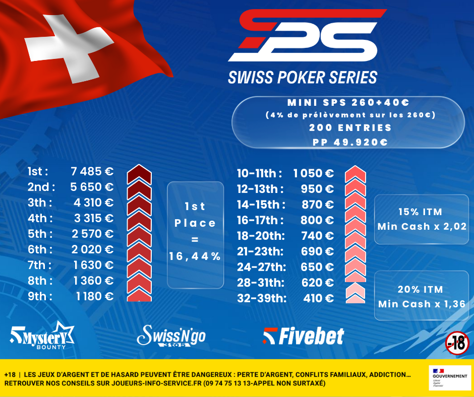 Cette approche s’inscrit directement dans la vision portée depuis l’origine par Daniel Duthon, ambassadeur des Swiss Poker Series : des payouts plus démocratiques, qui récompensent un plus grand nombre de participants. L’idée est simple et assumée : donner un peu moins aux toutes premières places et à la table finale, afin de redistribuer les gains de manière plus large et plus équilibrée.